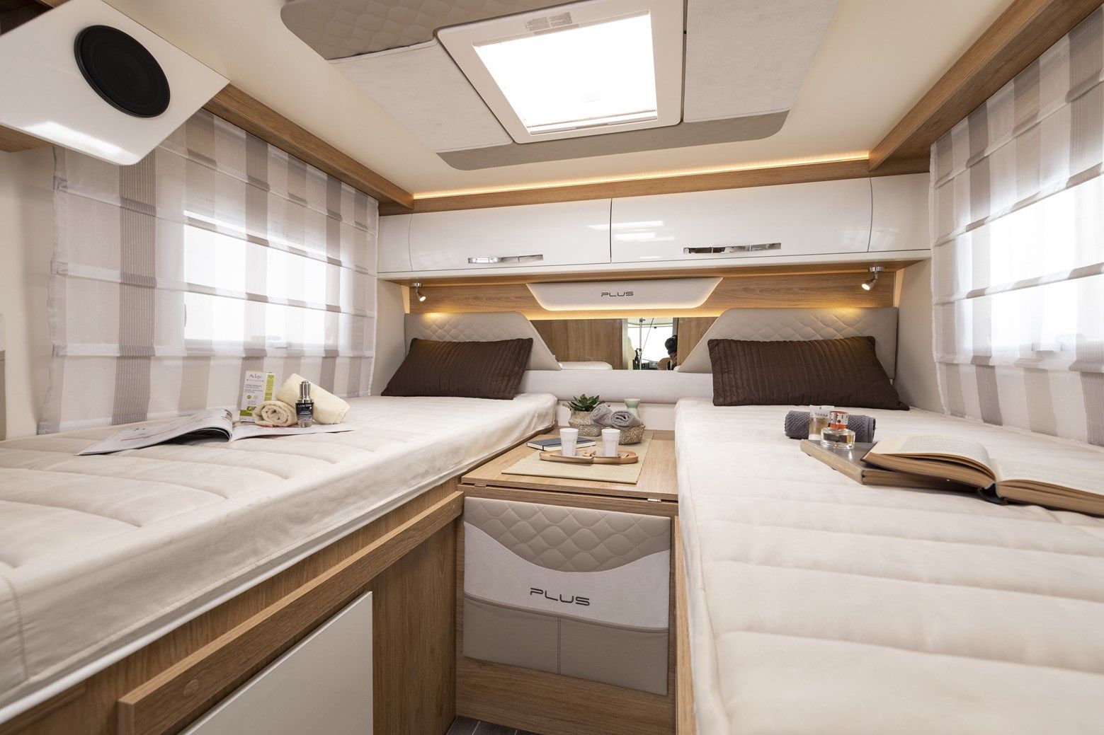Per i modelli con letti gemelli o letto trasversale posteriore, il riscaldamento perimetrale offre un calore avvolgente, mentre in mansarda bocchette aggiuntive garantiscono una temperatura ottimale anche nelle notti più fresche.
