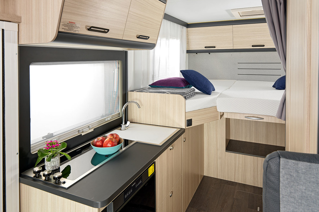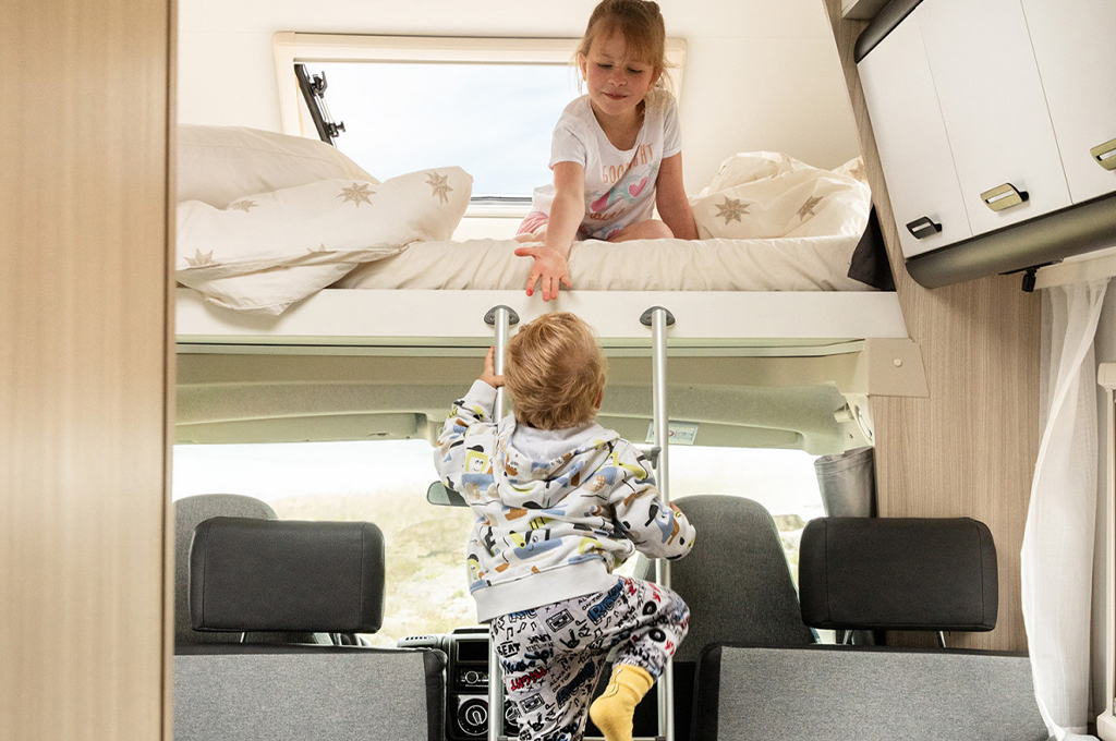 I VEICOLI PERFETTI PER LE VACANZE IN FAMIGLIA O IN GRUPPO, GRAZIE ALLO SPAZIOSO LETTO IN MANSARDA SOPRA LA CABINA GUIDA.