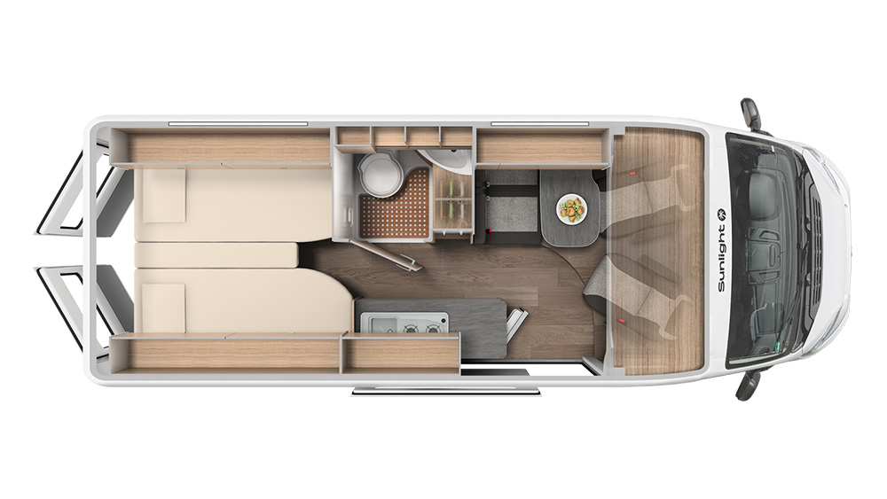 Con il suo interno spazioso e confortevole, Sunlight Cliff 640 è progettato per soddisfare le esigenze dei viaggiatori più esigenti, offrendo un'esperienza di viaggio senza pari. Le lunghezze disponibili, 600 e 640, permettono di scegliere la configurazione che meglio si adatta alle proprie necessità, garantendo flessibilità e versatilità in ogni avventura.