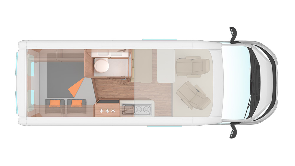 L'arredamento interno è curato nei minimi dettagli, con tessuti di alta qualità e finiture eleganti. Gli oblò e le finestre a compasso offrono ventilazione e luminosità, mentre le tende a rullo combinano privacy e stile. Con una comoda area dinette e un letto ospiti, il CaraBus 600 DQ Edition Italia è progettato per offrire comfort e praticità durante i viaggi su strada.