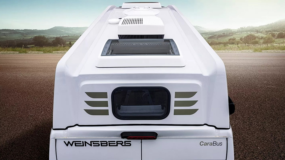 Esteticamente, il CaraBus 600 MQH si presenta con un chassis bianco, griglia del radiatore nera con inserto cromato e paraurti anteriore non verniciato color grigio granuloso. Gli pneumatici da 16" con cerchi in acciaio assicurano una buona aderenza sulla strada. La cabina è dotata di volante con comandi per la radio, console centrale con portabicchieri, sistema di oscuranti plissettati e coprisedili di alta qualità nel design Weinsberg.