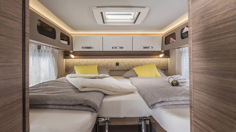 La sicurezza è una priorità con cinture di sicurezza con ancoraggio a 3 punti per il guidatore e il passeggero anteriore durante la marcia, garantendo tranquillità e protezione durante ogni viaggio. I letti, sia il basculante che quelli nella parte posteriore, offrono dimensioni generose per un sonno riposante e rigenerante dopo una giornata di avventure.