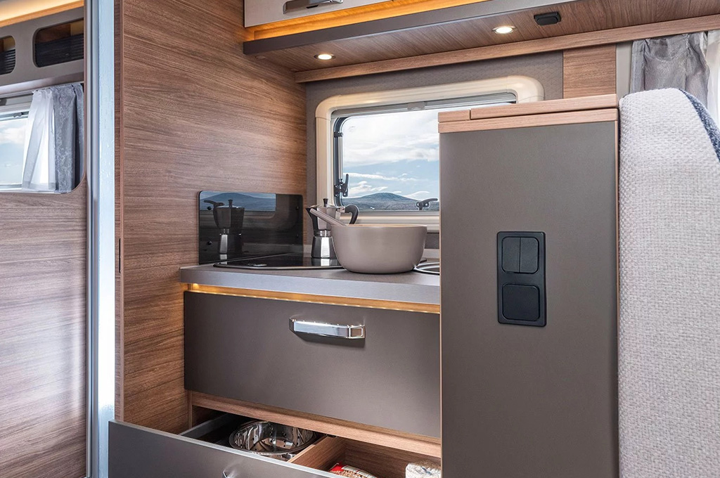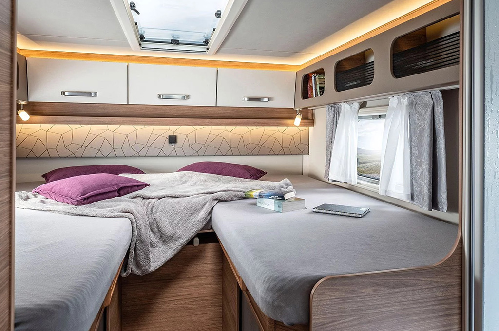 Con un design progressivo e dinamico, caratterizzato dai fanali Full-LED, il CaraCore si distingue per la sua eleganza senza tempo. Il letto basculante di serie offre un posto al sole ideale per riposare e rilassarsi durante le avventure.