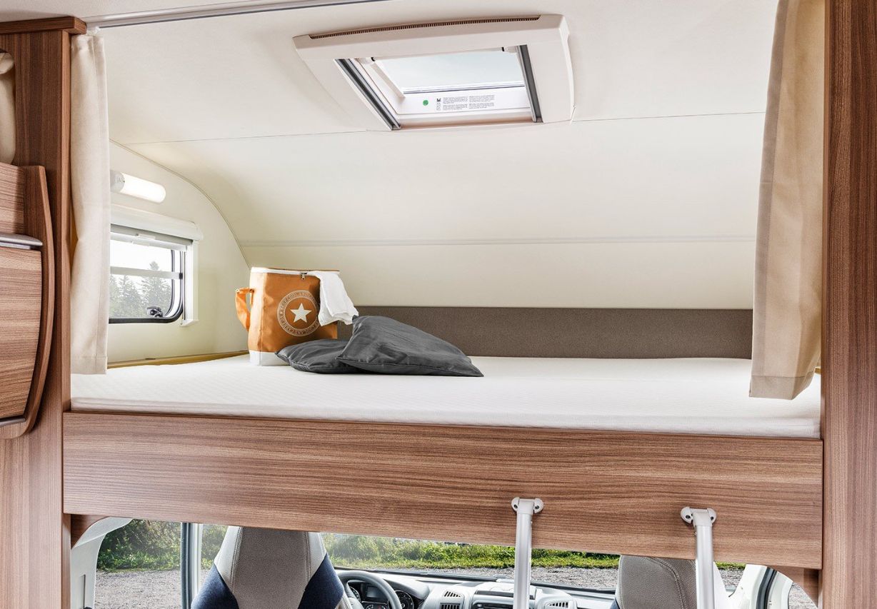 Il vero gioiello del CaraHome è la sua spaziosa cellula mansardata, che ospita un enorme letto matrimoniale dal quale potrai goderti il cielo stellato attraverso l'oblò. Con una lunghezza che varia da 597 cm a 699 cm e una larghezza esterna di 320 cm, offre un incredibile spazio interno, con un'altezza abitabile che ti farà dimenticare di essere in un veicolo.