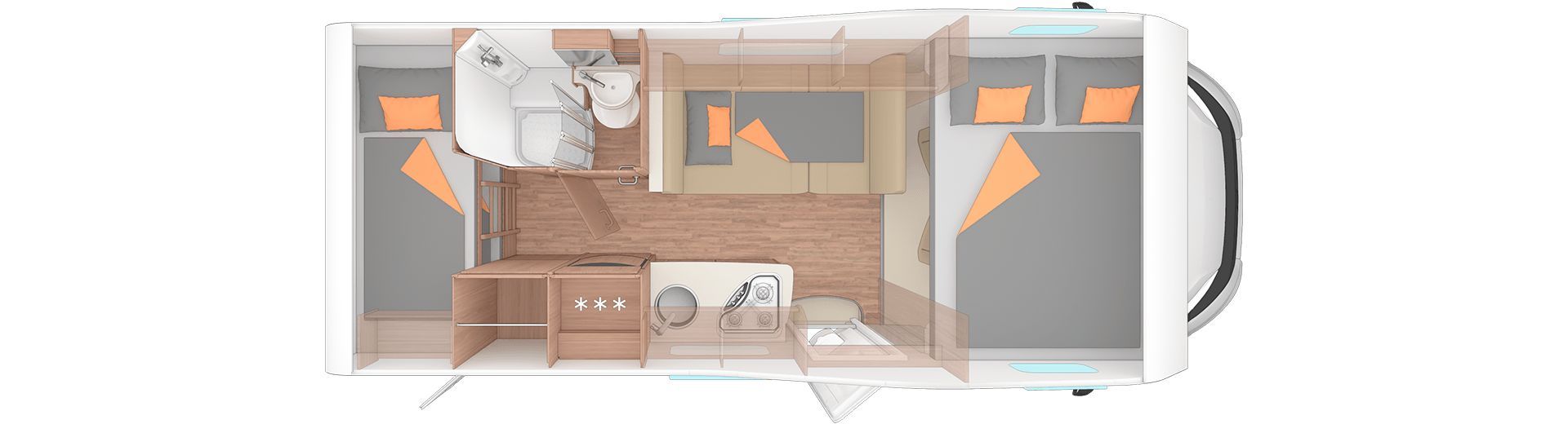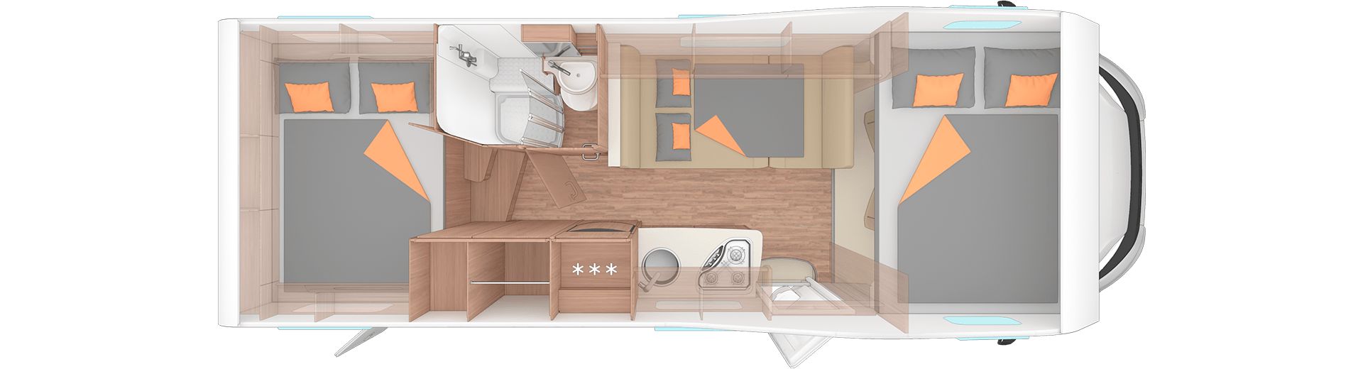 Uno dei punti di forza più evidenti del CaraHome è la sua tecnologia SUPERLIGHT, che non solo lo rende leggero e maneggevole, ma consente anche di risparmiare sui consumi di carburante. Nonostante la sua leggerezza, offre un'enorme quantità di spazio di stivaggio, perfetto per tutte le tue attrezzature e bagagli. Inoltre, le due zone notte separate assicurano privacy e comfort per tutti i membri della famiglia.