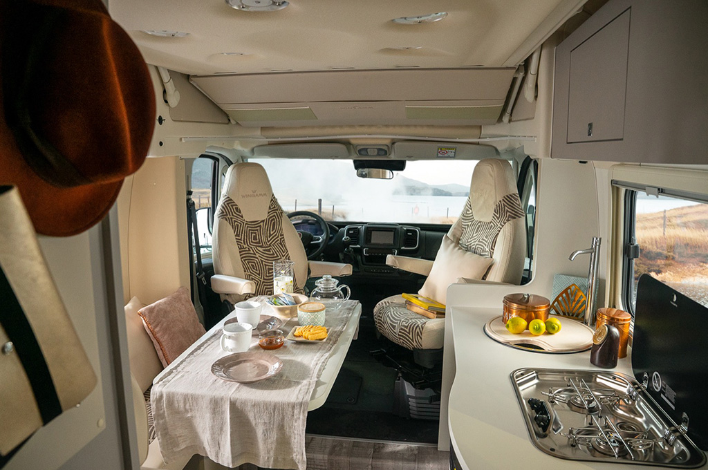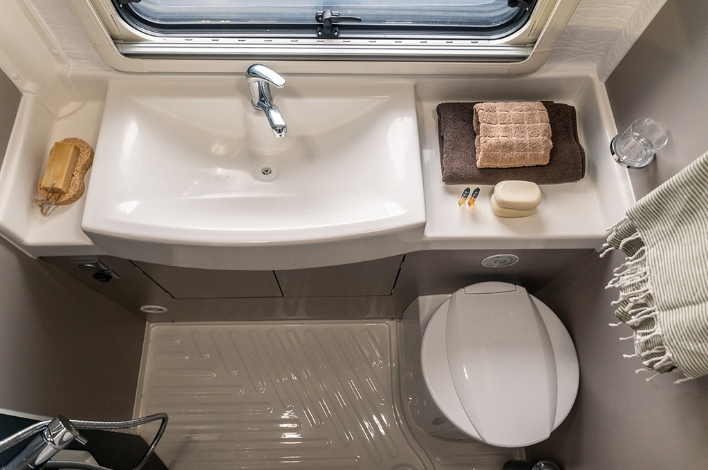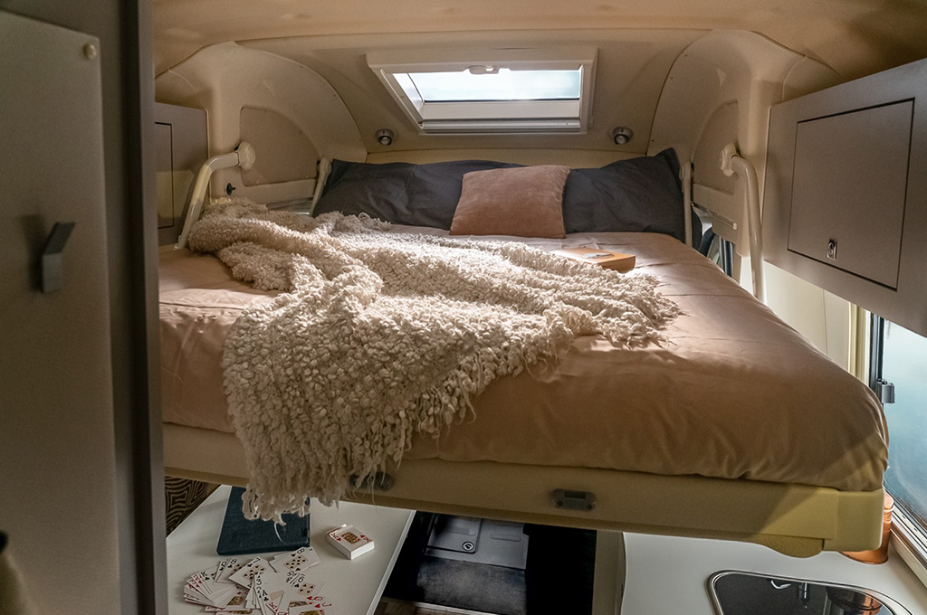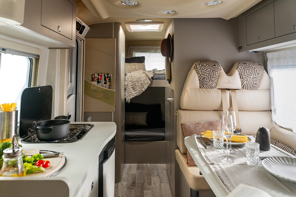 L'interno è un concentrato di efficienza: la dinette accoglie una cucina ben organizzata, sempre a portata di mano per ogni necessità. La zona notte è divisa in due spazi separati: il letto basculante all'anteriore e i letti a castello nella parte posteriore, circondati da pareti in vetroresina-doppio guscio riscaldate con il sistema X-Trafit per un comfort termico eccezionale.