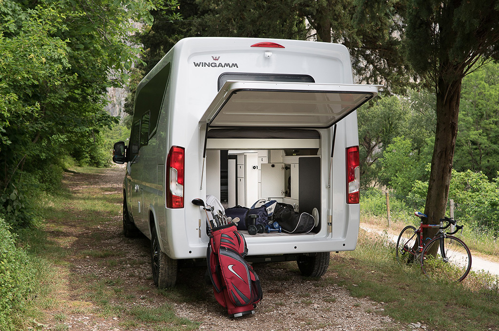 Wingamm City Pro del furgone Fiat Ducato ha solamente la motrice e le misure esterne; la carrozzeria non è quella in lamiera del furgone, bensì una monoscocca in vetroresina con tutto il comfort termico ed acustico garantito dagli standard Wingamm. La porta di ingresso non è l’enorme porta scorrevole del furgone, ma una solida porta a battente realizzata in vetroresina doppio guscio coibentata. Alle due porte posteriori a battente del furgone, è stato preferito uno sportello in vetroresina con apertura alare che permette un accesso pratico all’ampio gavone posteriore.