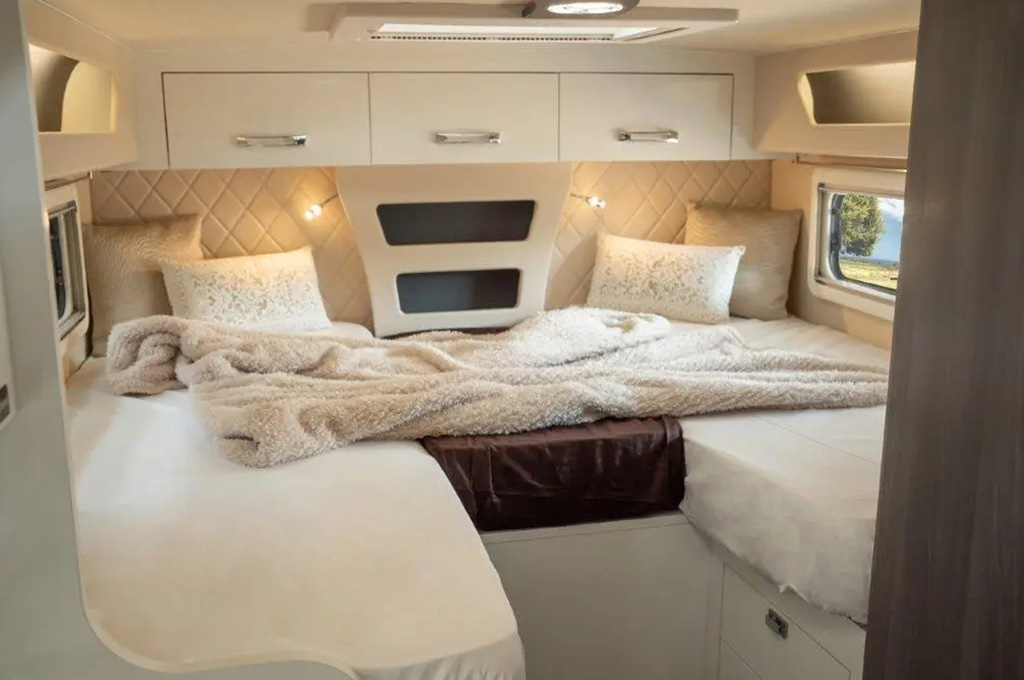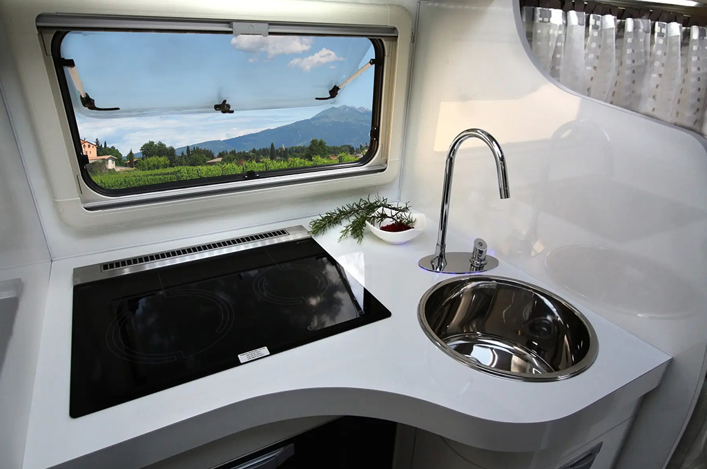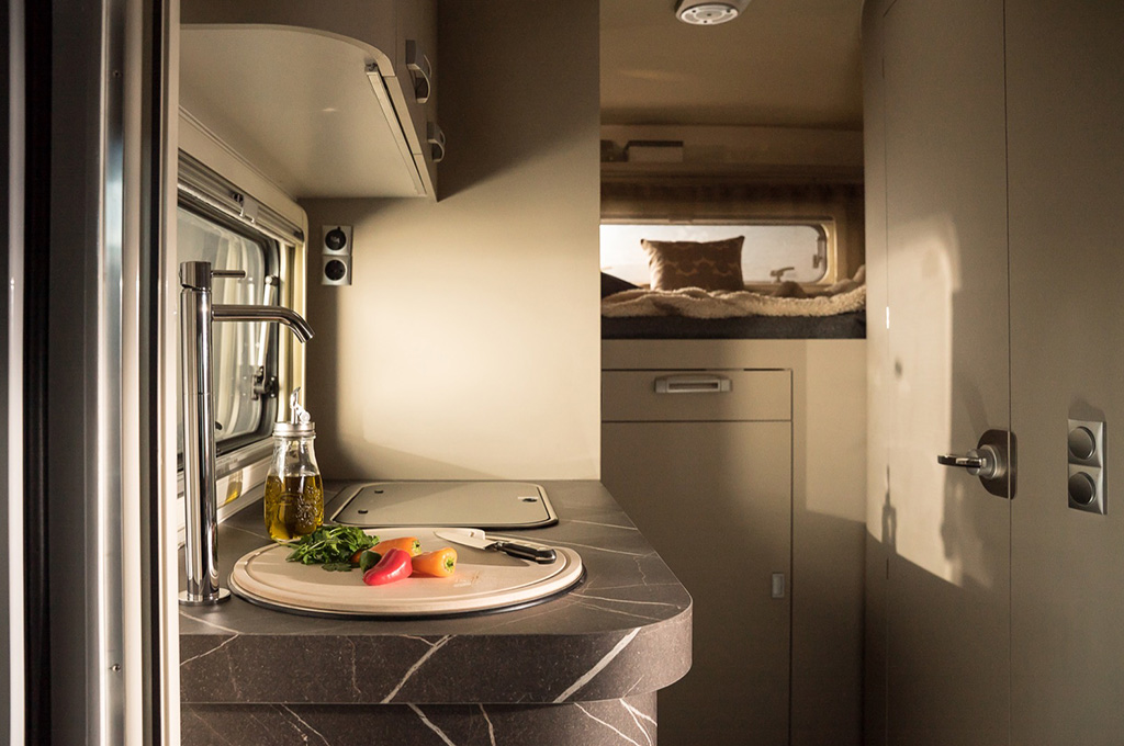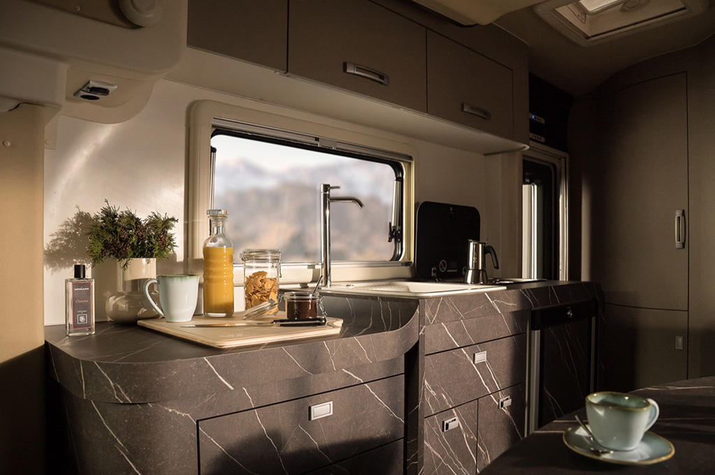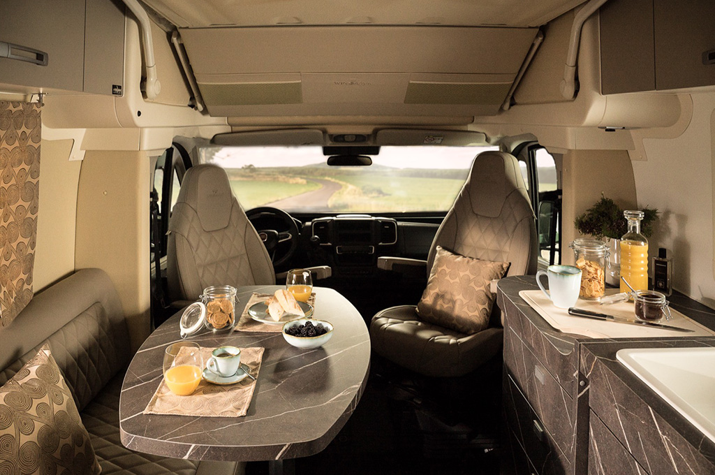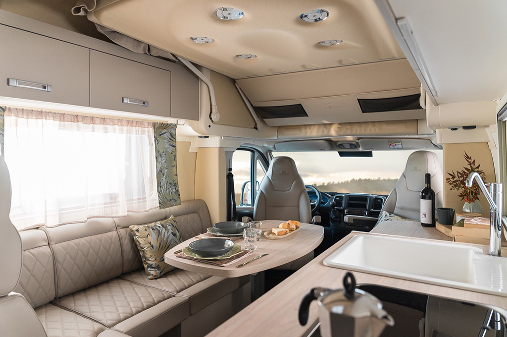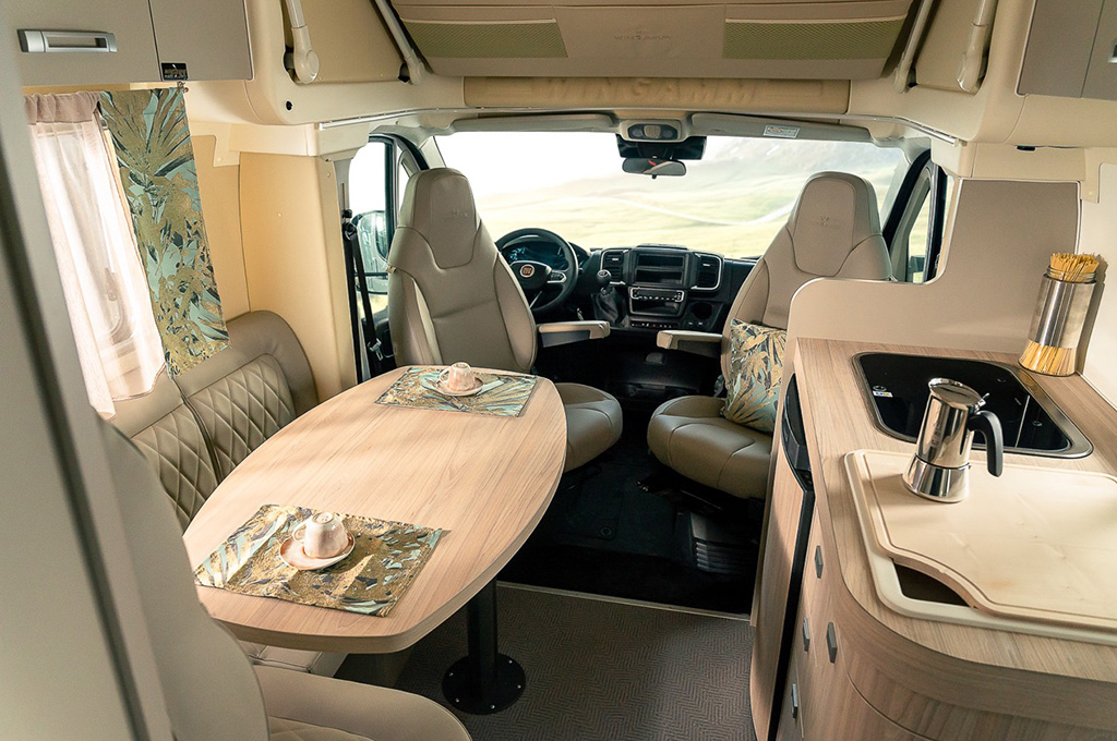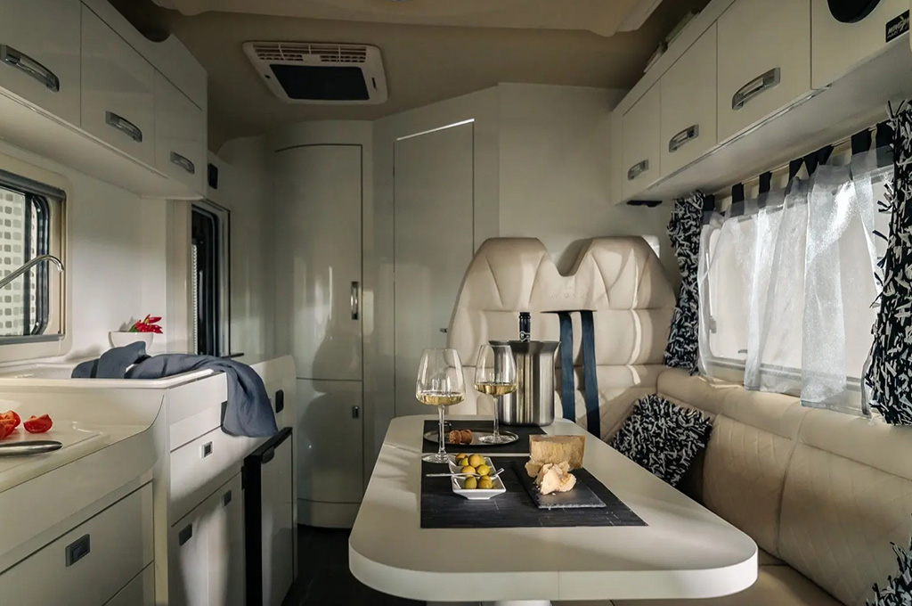 Il design raffinato e unico del Oasi 540.1 si distingue per la sua monoscocca in vetroresina, che non solo ottimizza l'aerodinamica ma assicura anche un comfort di guida superiore durante lunghe percorrenze. All'interno, nonostante le dimensioni contenute, ogni spazio è sfruttato con intelligenza: una cucina spaziosa, una toilette ben dimensionata e un living accogliente con finiture lussuose che garantiscono una vivibilità eccellente anche in compagnia.