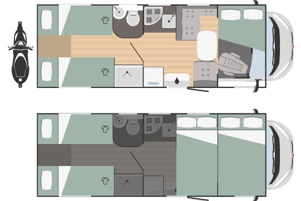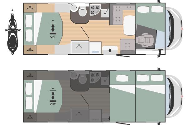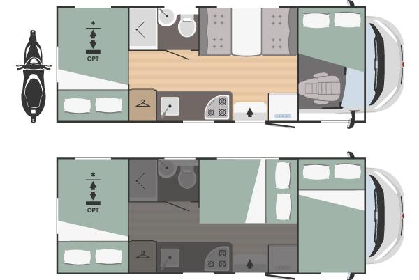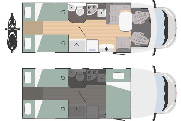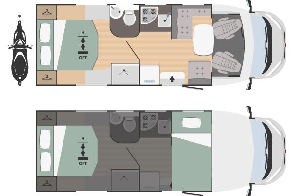 La serie XGO Dynamic è stata rivoluzionata per soddisfare le esigenze dei viaggiatori moderni desiderosi di esplorare nuove mete con comfort e stile. Con 14 configurazioni disponibili, tra cui 6 mansardati e 8 profilati, questa gamma offre una varietà straordinaria di soluzioni per living e zone notte. La scelta è ampia: dal letto centrale ai letti gemelli, dal matrimoniale trasversale al letto alla francese, con opzione di letto basculante elettrico su richiesta.