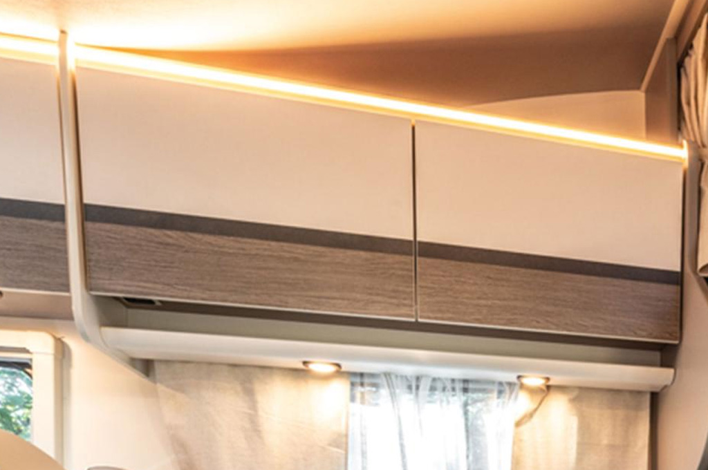 Il design della nuova serie è un connubio di semplicità e raffinatezza, abbinato a materiali durevoli e un estetica contemporanea. Le dotazioni sono all'altezza delle aspettative: dalla toilette con doccia separata ai piani cottura a tre fuochi, dai pensili capienti agli armadi ben organizzati.