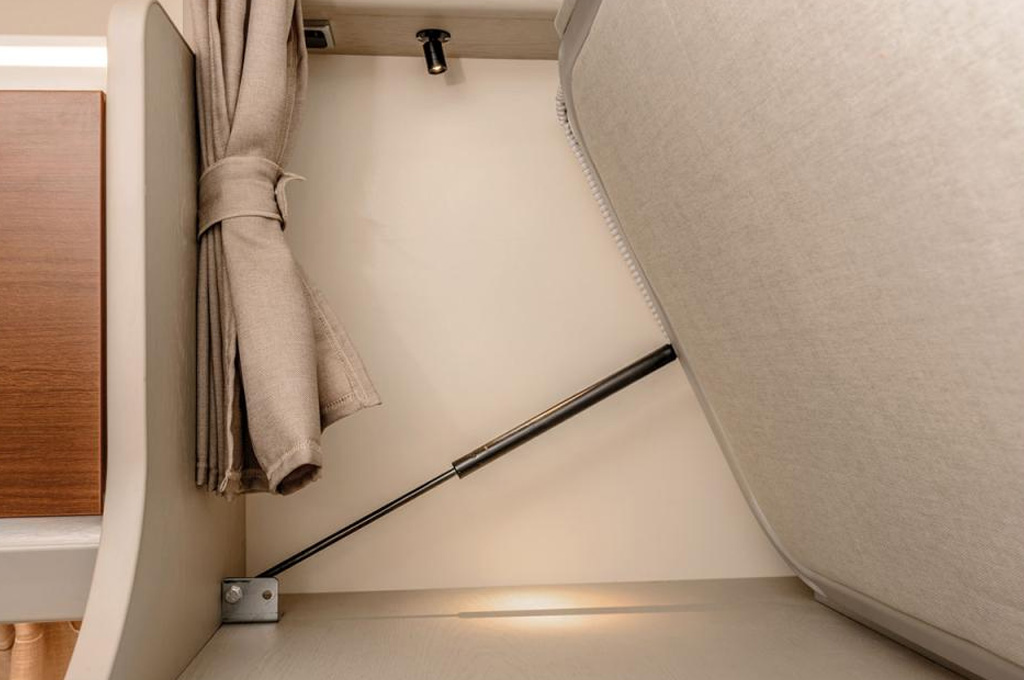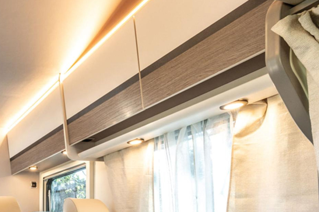 Ogni dettaglio è studiato per il massimo comfort e praticità, come gli oblò trasparenti nella zona giorno, il riscaldamento Truma con unità di comando digitale, e i poggiatesta automobilistici regolabili in altezza (eccetto sui modelli 66P e 99P). Le finestre sono dotate di oscuranti scorrevoli con zanzariera integrata, mentre l'illuminazione interna a LED "Guidaluce" assicura un'atmosfera accogliente.